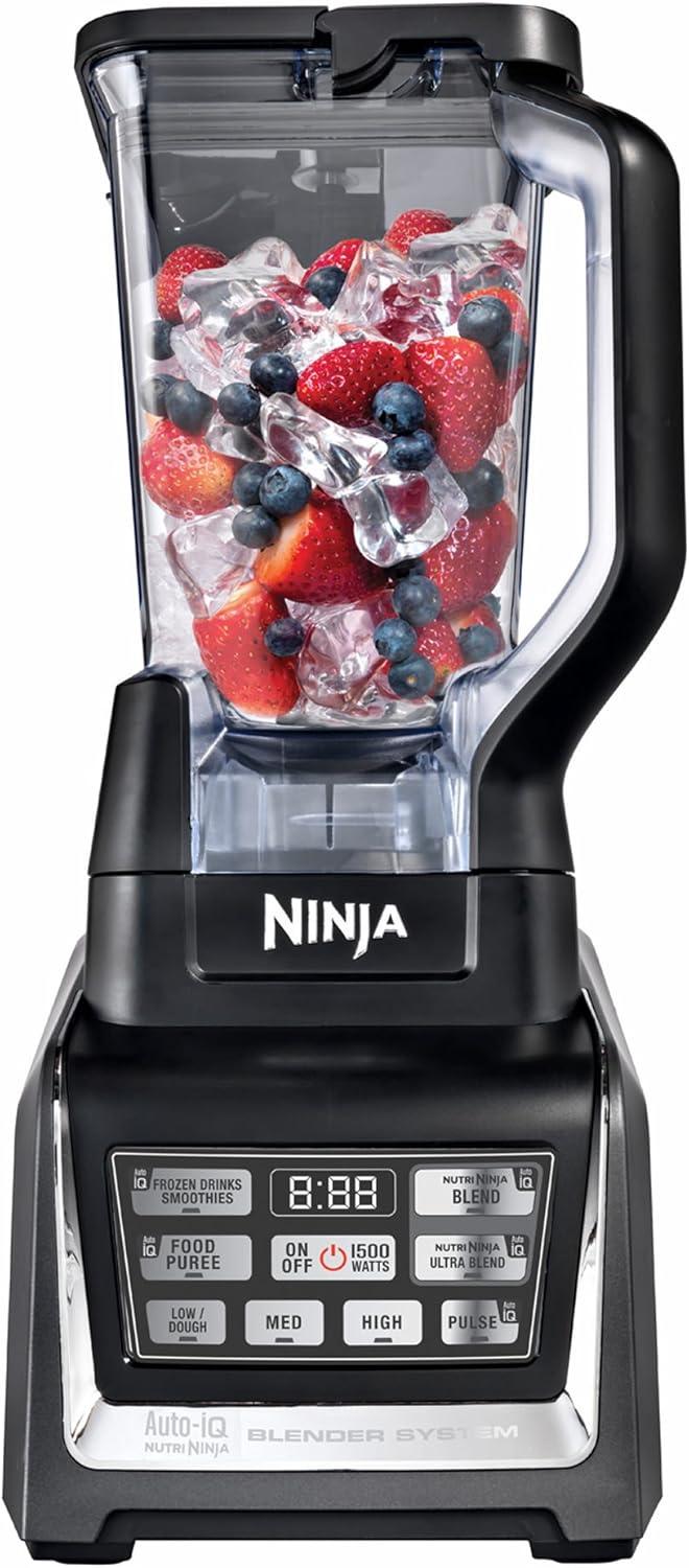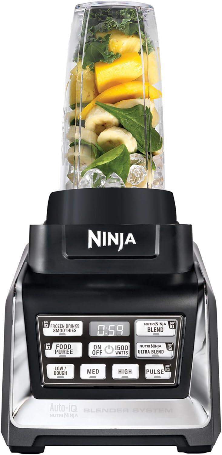 – Auto-iQ Technology provides convenient one-touch blending. – Pro extractor blades deliver powerful nutrient and vitamin extraction – Auto-iQ intelligent blending programs with two manual settings deliver great results. – 1500 watts of power effortlessly crushes whole fruits, vegetables and ice. – Digital countdown timer lets you know when your recipe will be complete. – Large food processing bowl precisely creates the perfect, smooth consistency for purees, dips and spreads. – Sip and Seal Lids allow you to take your concoctions on the go.