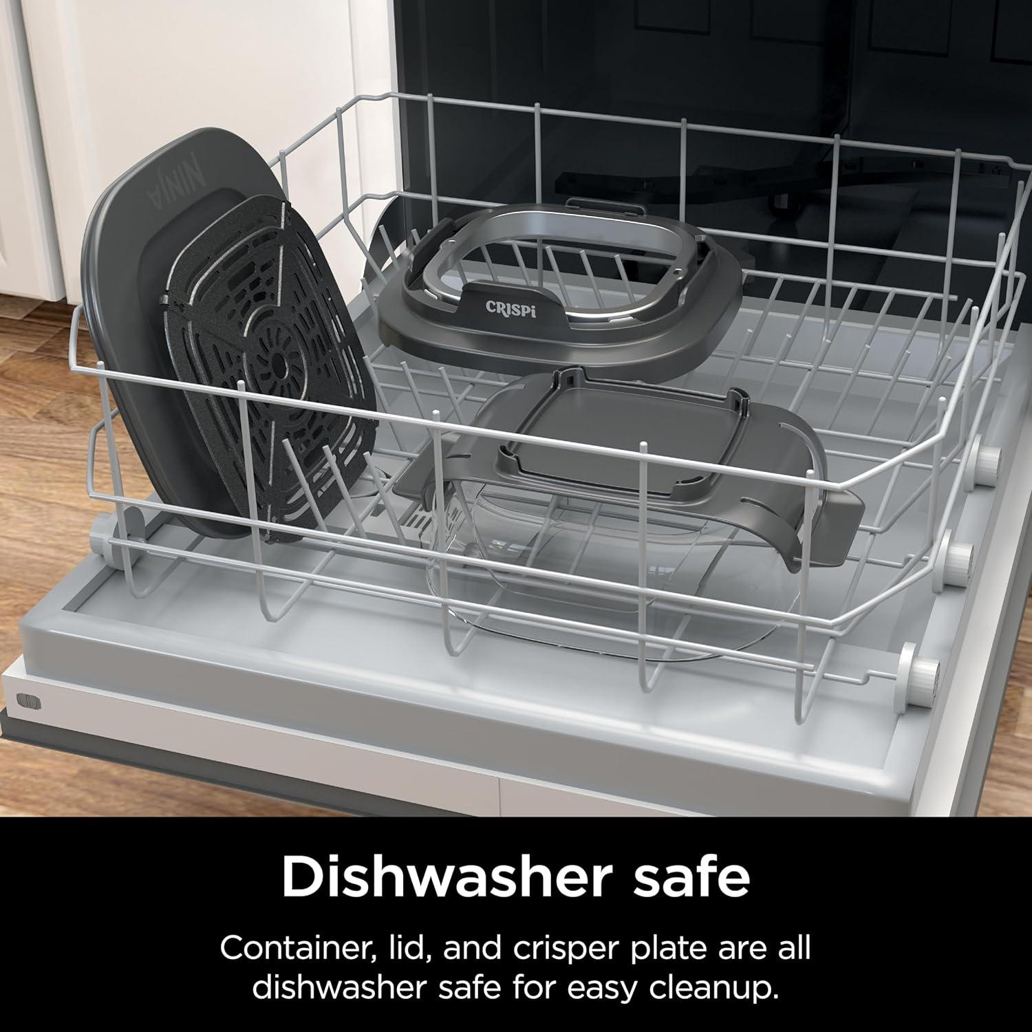 Easy to Clean: Dishwasher-safe container, crisper plate, and lid
