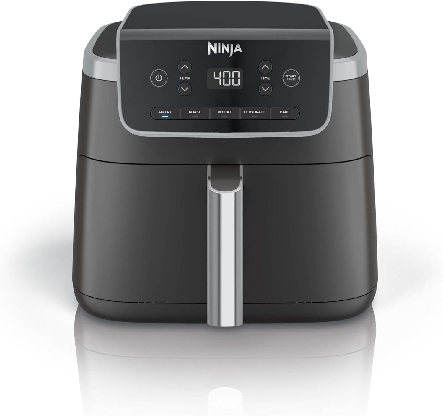 Ninja Air Fryer, Roast, Bake, Air Fry, Roast, Broil, Reheats, & Dehydrates, 4-in-1, Fries, Frozen Food, Veggies, and Juicy Meat, Less Oil, Easy Meals, Healthy Meals, Compact, 4 QT, Grey, AF101(5.5 QT XL)