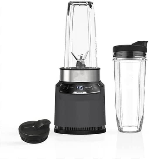 imageNinja BN401A Nutri Pro Compact Personal Blender AutoiQ Technology 1100PeakWatts for Frozen Drinks Smoothies Sauces ampamp More With ToGo Cups ampamp Spout Lids Gray