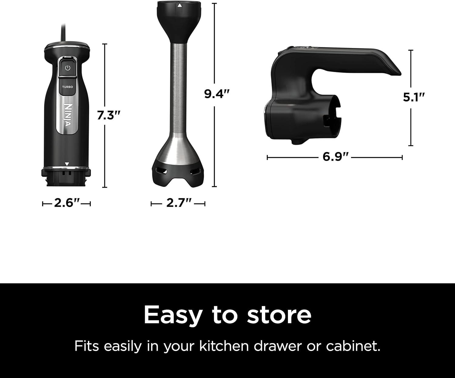 9” STAINLESS STEEL IMMERSION BLENDING ARM: Comes with built-in pan guard allowing you to blend directly in deep pots or pans without scratching them