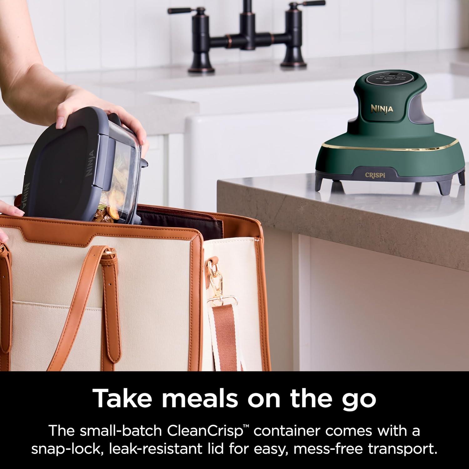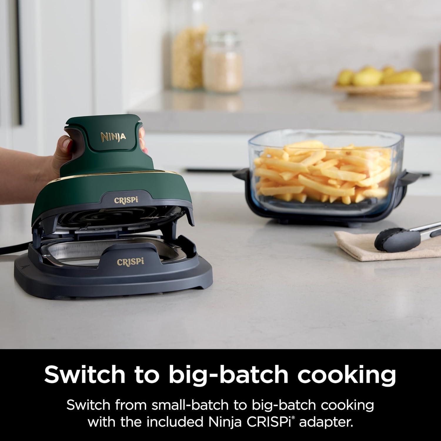 Ninja Crispi 5-in-1 Portable Glass Air Fryer, 4-QT, 2.5-QT & 6-Cup Glass Containers with Crisper Plates & Storage Lids, Microwave, Freezer & Dishwasher Safe, British Racing Green, FN103BF(Ginger Snap)