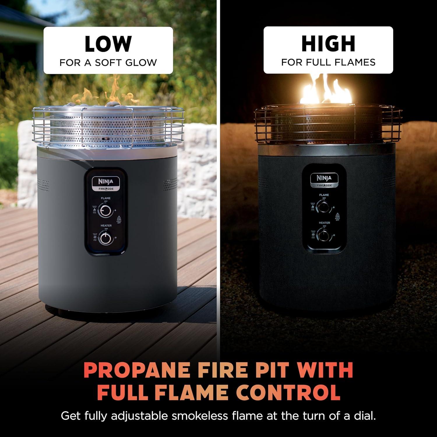 Light the flame, control the heat and set the mood with the all-in-one customizable smokeless Ninja™ Fireside360™. This powerful outdoor heater & fire pit creates a circular heat zone and instant flames on demand. Choose between flame only, heat only, or both to match any mood, any time of the year. Ninja’s Heatzone™ Technology means you can control the flame and the heat at the turn of the dial to adjust your environment to your preferred settings. And propane power means head-to-toe heat coverage with no smoke, no embers, and no cleanup after every use.