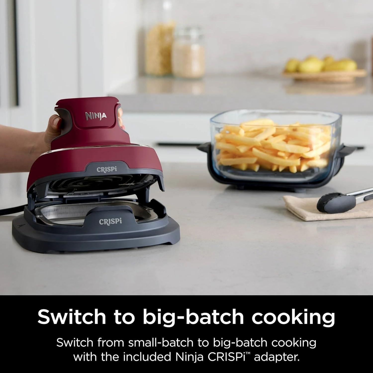 Introducing the Ninja Crispi Portable Cooking System. This compact powerhouse packs the 1500W power of a full-sized air fryer into a portable design. Whether you’re whipping up quick single-serve meals in 7 minutes, sharing crispy snacks on the go, or serving a crowd, the Ninja Crispi makes it easy. The durable borosilicate glassware withstands extreme temperature changes from 22F-450F, and it’s safe to cook directly on granite countertops, laminate, quartz, butcher block, marble, and more.