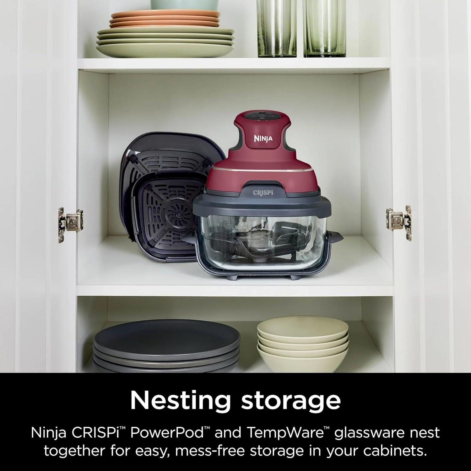 ALL-IN-ONE SYSTEM: Includes the Ninja Crispi PowerPod, 4-qt and 5-cup TempWare glass containers, and 2 storage lids.