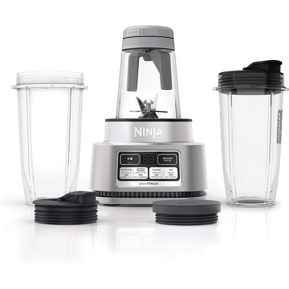Ninja Foodi Power Pitcher System Blender has Total Speed Control with smartTORQUE to power through at any speed and never stall. The Power Pitcher is a blender, smoothie bowl maker, food processor, and dough mixer. The Power Nutri Cup with to-go lid for smoothies. The Power Nutri Bowl with Power Paddle powers through frozen foods with less liquid for thick smoothie bowls. 1400-peak-watts.