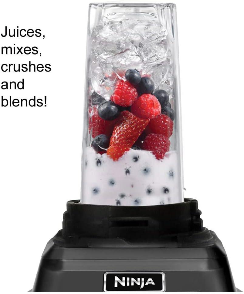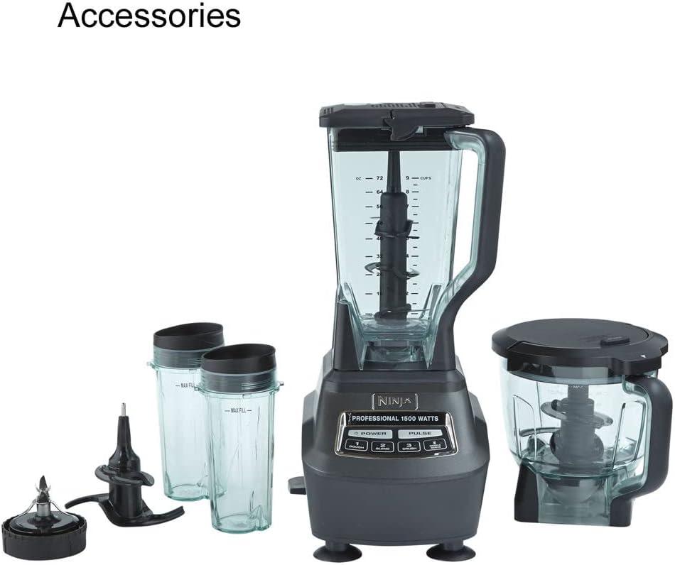 The Ninja Mega Kitchen System comes packed with 1500 watts of power to handle all of your drink and meal-making needs. The XL 72 oz*. blender pitcher features Total Crushing technology to blast through ice and frozen fruit. Two 16 oz. Nutri Ninja cups with To-Go Lids are perfect for creating personalized, nutrient-rich drinks to take on the go. The 8-cup food processor bowl comes equipped with a chopping blade for perfect, even results and a dough blade that can mix up to 2 lbs.