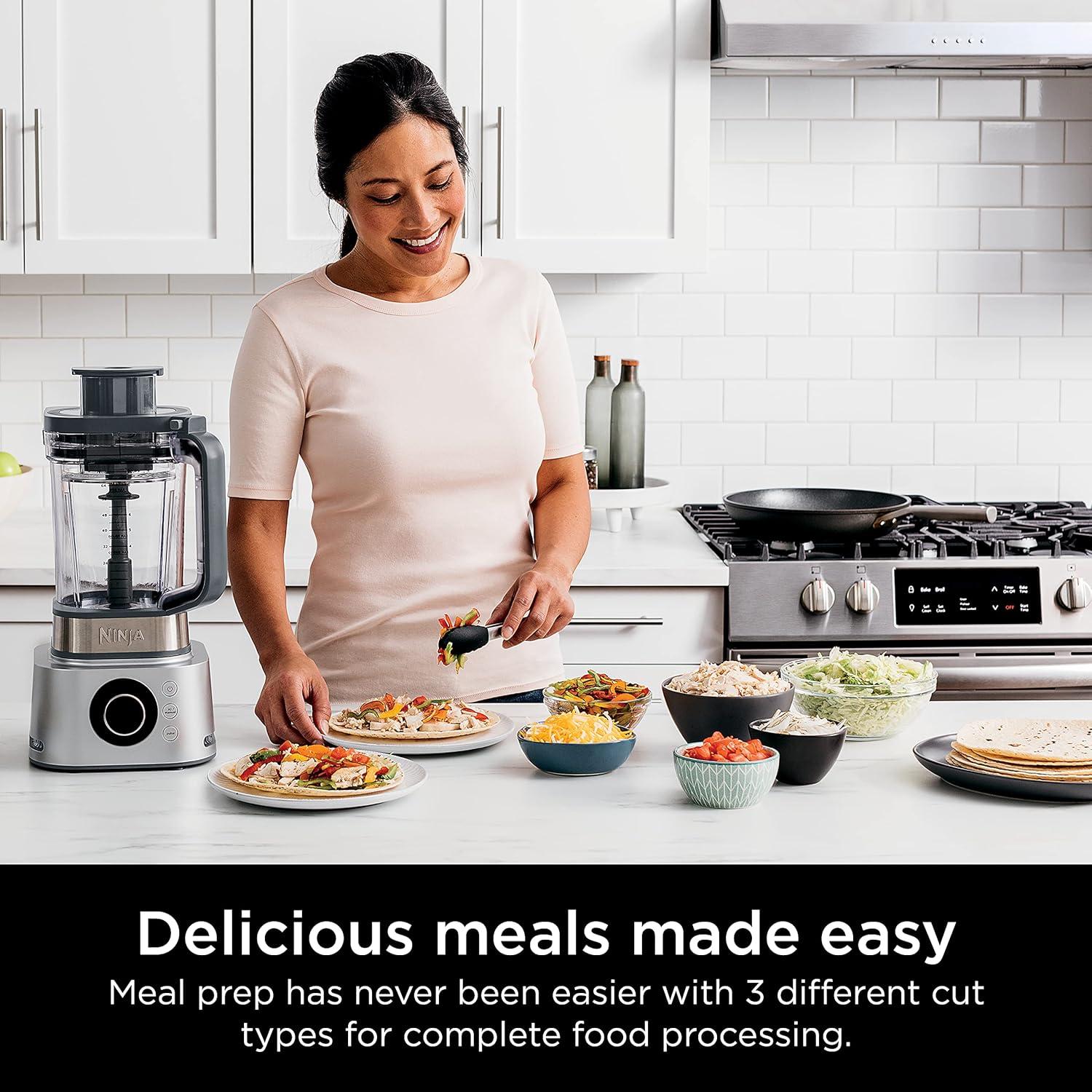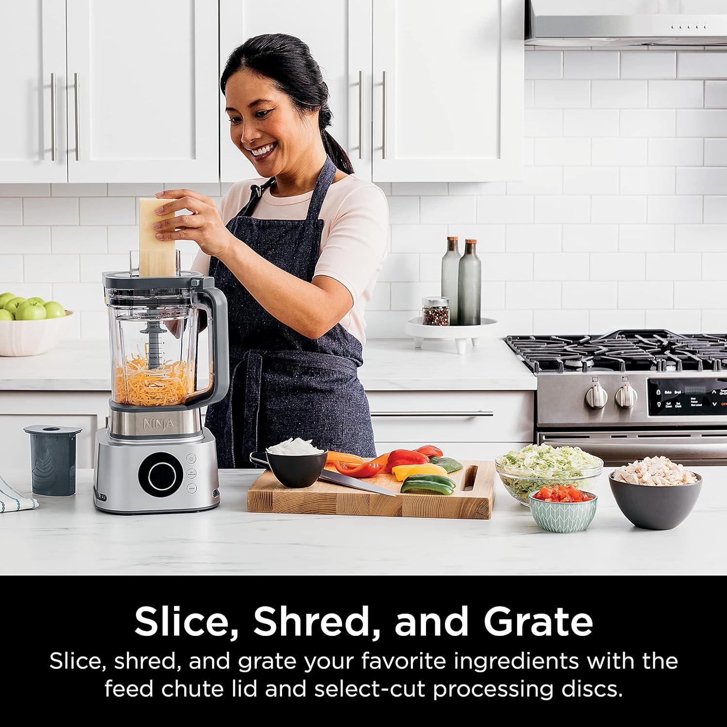 ENHANCED FOOD PROCESSING: The enhanced processing lid with feed chute and select-cut processing discs allow for precise shredding, slicing, and grating.