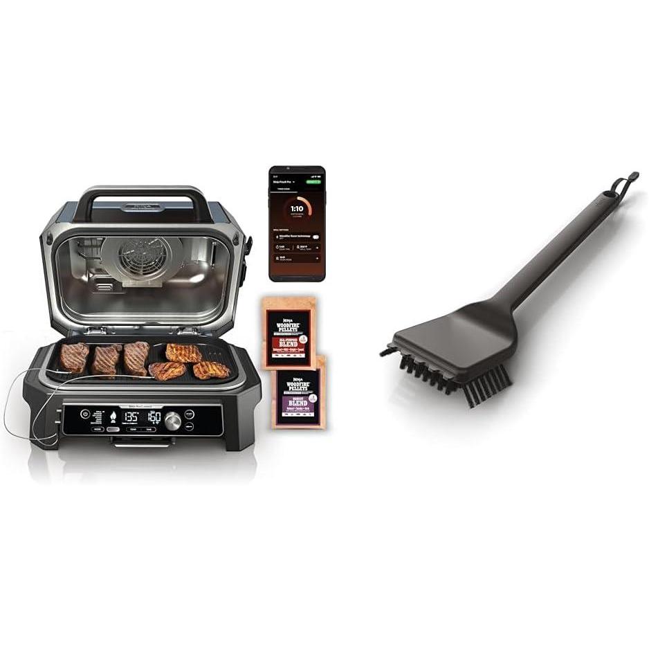 Ninja Woodfire ProConnect Premium XL Grill & Smoker Bundle with Cleaning Brush for OG700/800/900 Series Grills(7-in-1 Grill+Thermometer+App Connect)
